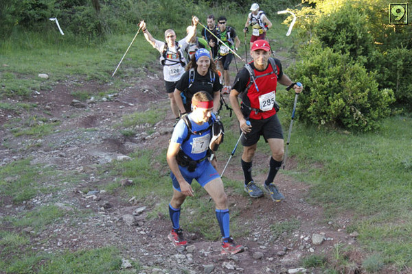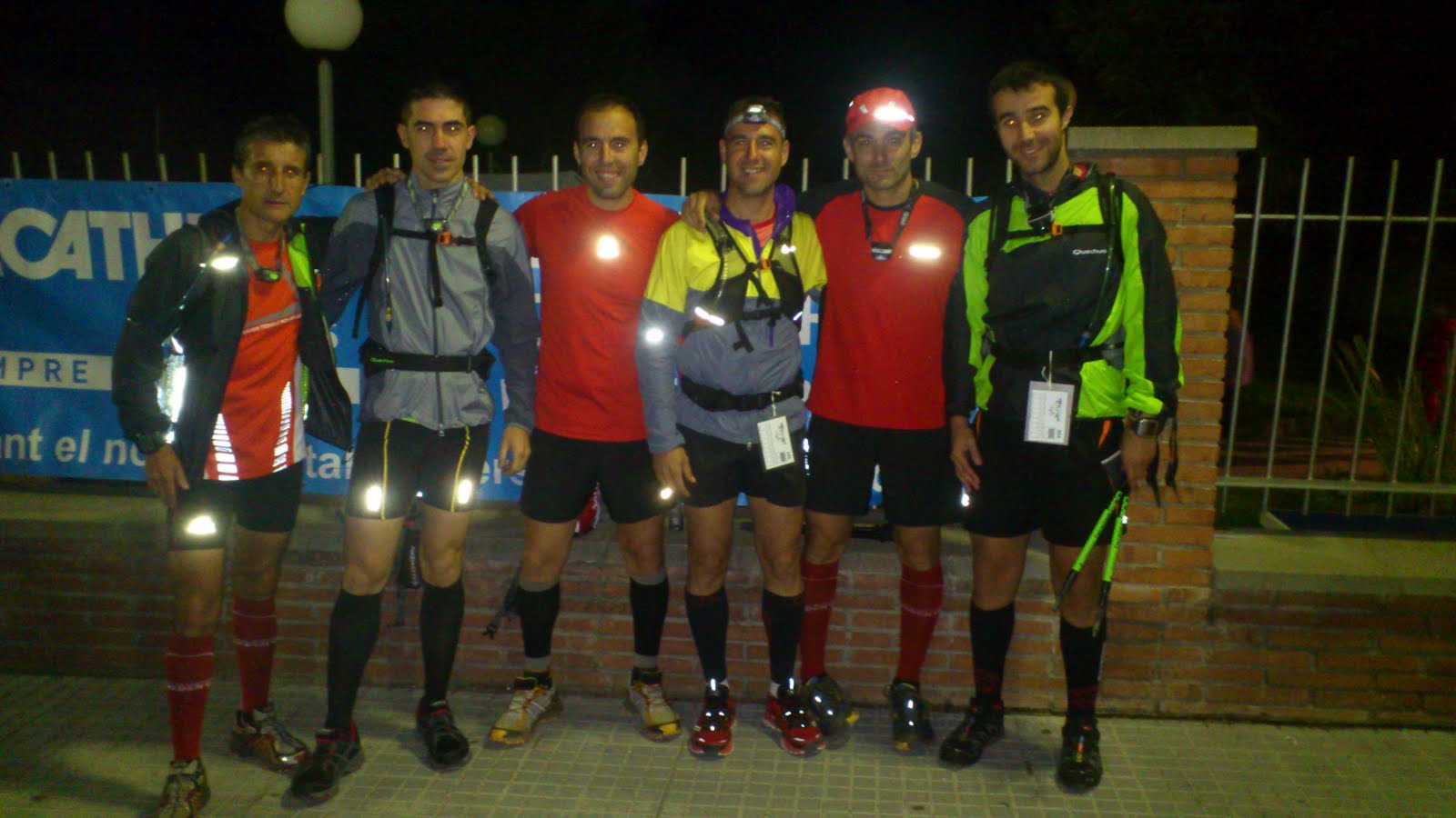 A las 00:00 salia mi grupo a ritmo muy comodo haciendo caco (caminar y correr) entre risas batallitas y proyectos varios , la noche era perfecta algo de luna y poco frio. Mis compañeros antonio, manel y jesus (polvorilla) se colocaron con el grupo de cabeza y enseguida desaparecieron. Yo me puse a hablar con un corredor que me sonaba de la ultra del garraf , marc, y con el cual hicimos toda la ultra juntos. Pasado el primer control me encuentro a gralla y nano en tierra de nadie que se habian descolgado del grupo de cabeza, pronto hacemos un buen grupo gralla, nano, marc y yo y empezamos a deborar km y desnivel. Subimos la dura subida de la mola en la que encontramos gente con dos copas de mas y calentura genital, me imagino como acabarian ......En lo alto de la mola miramos el paisaje y bajada hacia el siguiente pico, en el camino encontramos dos chavales pidiendonos ayuda, el hermano de uno de ellos estaba con pericarditis en una cueva cercana y querian que los acompañaramos a la carretera donde se encontrarian con los bomberos, como apunte decir que no llevaban mas que la luz del movil increible, luego pasan accidentes ........... Una vez acompañamos a estos "aventureros" seguimos nuestro camino, coronamos el montcau (creo que asi se llama) y descenso trialero hacia el siguiente. Gralla empezo a tener problemas fisicos, no se encontraba comodo y los tobillos se le torcian un y otra vez asi que en el siguiente avituallamiento decidio abandonar (nos quedamos sin el jefe del comando).km 40 aprox. se acaba la noche y por fin amanece, y lo que vemos no nos hace mucha gracia, gallifa y la inmensa mole en forma de montaña que protege el pueblo y a la que tenemos que subir claro..menos mal que antes tocaba avituallamiento y con los animos de alberto y gralla que nos dicen que el grupo donde va antonio lo tenemos cerca, asi que empezamos la subida bastante dura por cierto, en 20 minutos calculo hacemos cima y empezamos a correr por larguisimas pistas a un ritmo bastante alegre. A la llegada al siguiente avituallamiento nos unimos al grupo de antonio, manel y mario. somos 6 y el siguiente destino es sant miquel del fai.