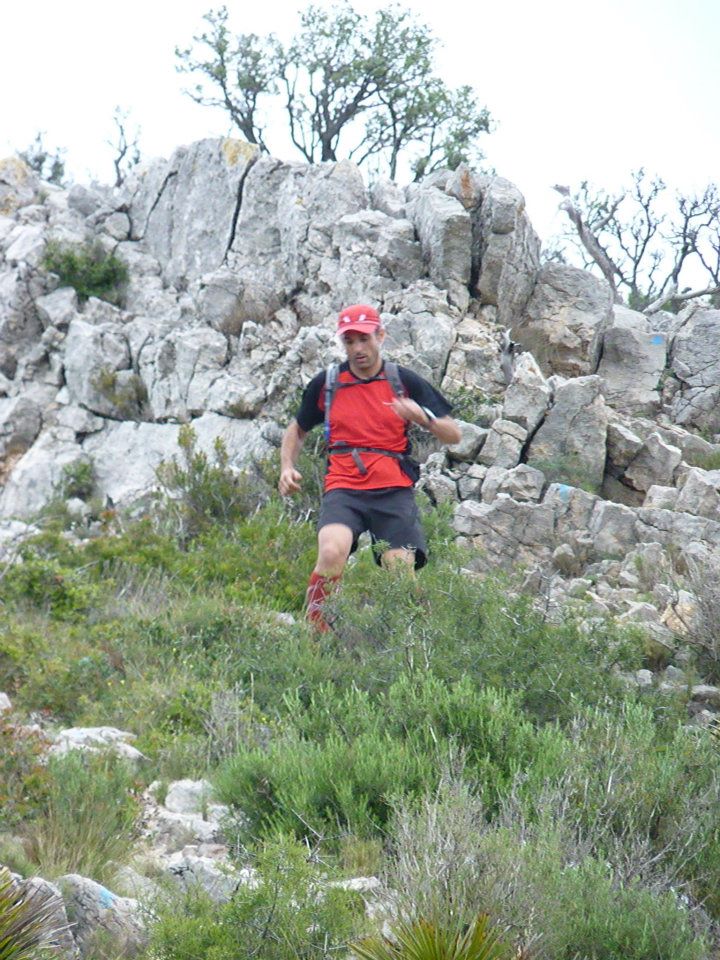 El segundo bucle es el mas duro con diferencia, terreno hostil con niebla y con alguna que otra grimpada ademas de pasos con cuerdas de seguridad hacen de esta parte del recorrido un parque de atracciones para el que le guste estas situaciones. Se sube a lo alto de la serra de llaberia y se baja hasta el cauce de un rio casi seco por el que hacemos algunos km sobre piedra y arena. Volvemos de nuevo a pratdip para iniciar la ultima vuelta menos tecnica que las dos primeras pero con mas kilometraje. La mayor parte del recorrido voy acompañado por un corredor y poco antes de llegar a vandellos se nos une otro, que menos mal que participo en la marxa el año pasado porque a la salida del avituallamiento de vandellos nos perdimos un poco, habia que deshacer el camino hacia atras para volver a encontrar de nuevo las marcas ¿?, asi que con la ayuda de este corredor encontramos el camino correcto. Debian ser sobre las 12 del medio dia y el sol empezo a calentar de verdad, uno de los compañeros de grupo empezaba a quedarse atras y al poco rato el otro compañero me comentó que el hombre del mazo le estaba visitando por lo que me quede solo los ultimos km.