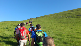 de nuevo subimos el coll de la marrana que ya tenia yo ganas de conocerlo y vaya tela con el, para mi fue muy duro por el calor y por que había trozos de bastante desnivel que hacia que tuviera que subir haciendo "s". una vez arriba me di cuenta que estaba en la planta baja de bastiments de 2882 m asi que apretar los dientes y para arriba. bastiments era la primera vez que lo subía y aunque no parece que sea muy alto porque no acaba en pico, desde abajo la fila de gente subiendo se perdía en el horizonte y hay te dabas cuenta que en la montaña las distancias no son lo que parecen.