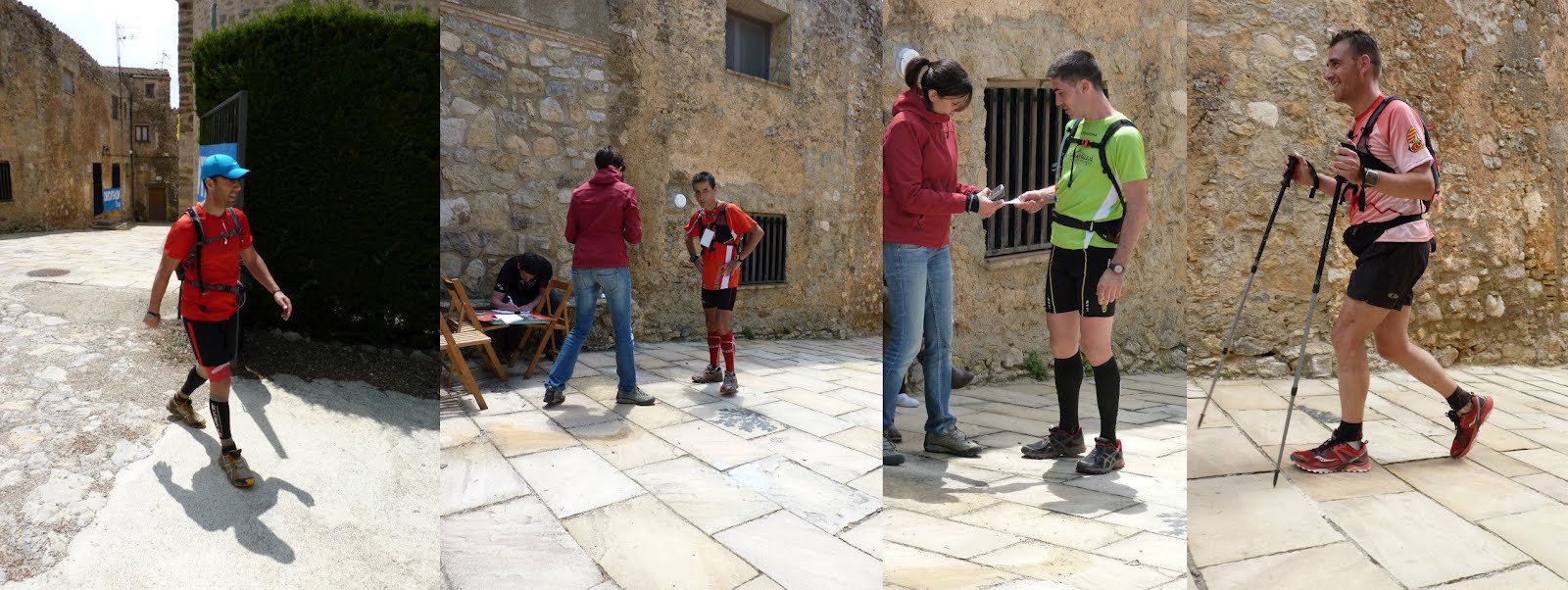 Ahora con nuevos efectivos en el grupo se entablan nuevos debates y asi sin darnos cuenta volvemos a llegar a un control donde gralla y anna nos tienen preparado otro magnifico avituallamiento que no nos falta de "na". GRACIAS. km 55, el calor es sofocante, 11 horas de ultra y ahora empieza lo bueno. se corre lo que se puede en lo llanos y bajadas pero como el calor es muy fuerte buscamos la sombra como agua de mayo. antonio empieza a notar un bajon fisico piensa en abandonar pero en el siguiente avituallamiento hay macarrones y eso hace que saque fuerzas y lleguemos todos juntos a sant feliu de codines. Menuda la que nos tenian preparada alli , macarrones, bizcochos, cafe, bebidas , geles etc.... y un camion de animos que no llenaron de nuevo las pilas. GRACIAS A TODOS.