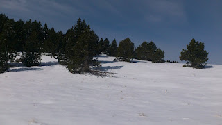 Menos mal que llevábamos el gps de mi hermano y pudimos seguir el "camino" por llamarlo asi, porque el maldito aparato nos hacia meternos fuera pista todo el rato.después de correr algunos km por pistas de ski y pasarlo pipa con el paisaje llegamos a rasos de peguera donde paramos a desayunar en un bonito lugar con hierba mojada.